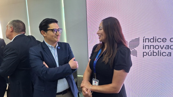 Orlando Rojas, Director ejecutivo de Laboratorio de Gobierno, junto a Johana Álvarez, Superintendenta (s) de Insolvencia y Reemprendimiento, en el lanzamiento de resultados de la 6a medición del Índice de Innovación Pública