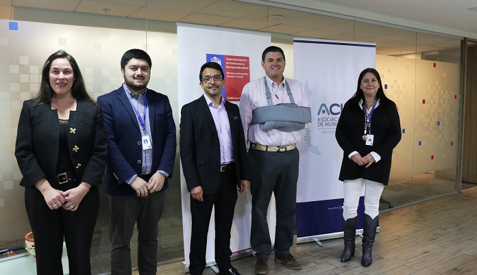 Daniela Sepúlveda, profesional Unidad de Innovación Superir; Elías Gutiérrez, Jefe del Subdpto. de Fiscalización; Hugo Sánchez, Superintendente; Gustavo Alessandri, Pdte. ACHM; Patricia Chotzen, Jefa Dpto. Jurídico Superir.