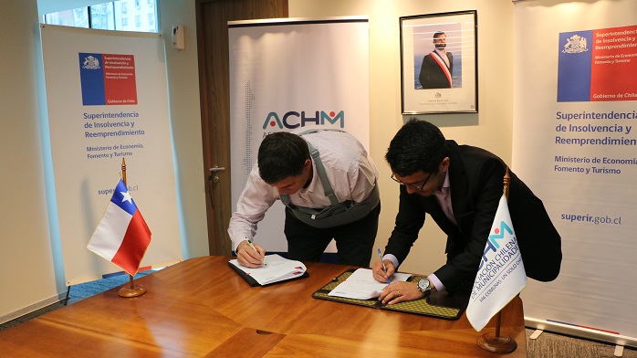 El acuerdo fue suscrito por el Superintendente de Insolvencia y Reemprendimiento, Hugo Sánchez Ramírez, y el Presidente de la Asociación Chilena de Municipalidades, Gustavo Alessandri Bascuñán, en una ceremonia realizada en dependencias de la institución pública.